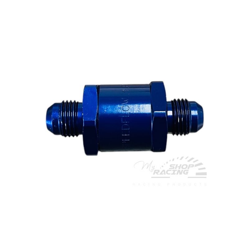 Clapet anti-retour en aluminium anodisé, spécialement conçu pour les systèmes d'injection haute pression. Largement utilisé près de la rampe ou après la pompe à carburant, il empêche la vidange du circuit lorsque la pompe est arrêtée. Fileté aux deux extrémités avec un filetage mâle conique de 6 mm. Pression d'ouverture minimale : 0,14 bar (2 psi).