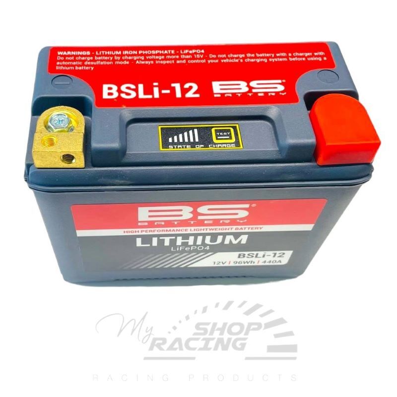 Labatteria BS lithium BSLi-12 fa parte della gamma LiFePO4. Progettata per i più esigenti, questa batteria da 12, 8V 8 Ah (96Wh) offre le massime prestazioni di avviamento, ulteriore sicurezza e una maggiore durata. Con il suo design ultra leggero, la batteria BSLi-12 fornisce un accelerazione più rapida a tutti i veicoli sportivi.