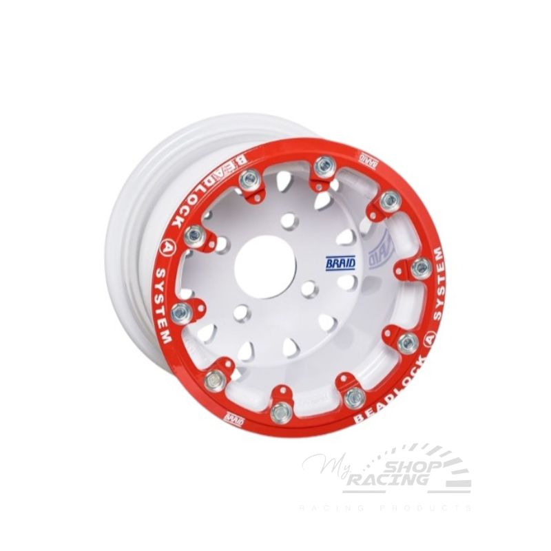 Il *sistema Beadlock A è costituito da un anello esterno in alluminio 6061-T6 imbullonato alla ruota che blocca il tallone esterno del pneumatico e lo mantiene in posizione consentendo il funzionamento a pressioni estremamente basse. Design ottimizzato per mantenere un peso simile a quello delle ruote standard non Beadlock. AnelloBeadlock* realizzato in alluminio leggero trattato termicamente. Sebbene il tallone interno non sia critico quanto quello esterno, il sistema incorpora anche uno speciale profilo della gobba lavorato a 90° sulla parte interna della ruota, nonché un sistema anti rotazione del pneumatico.