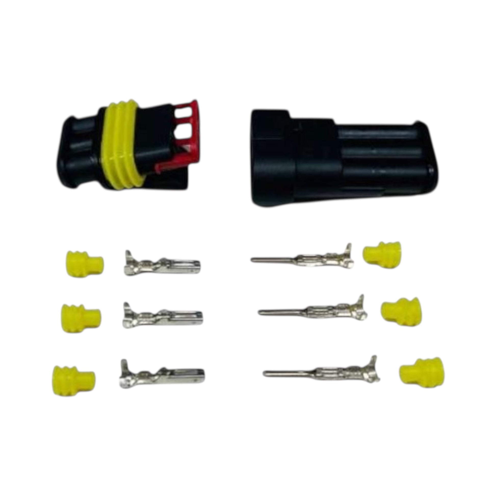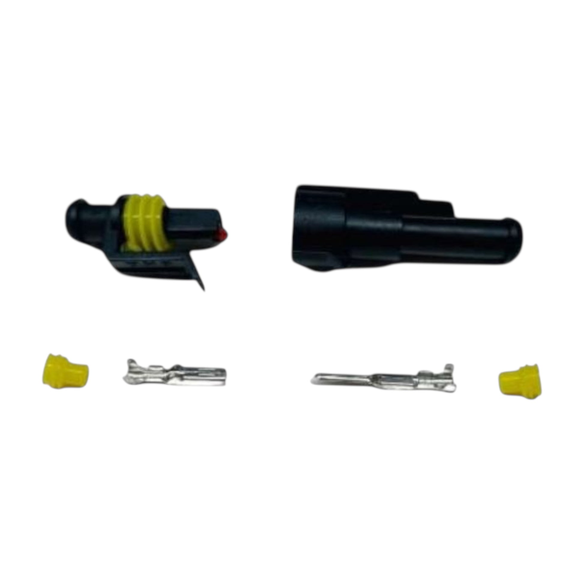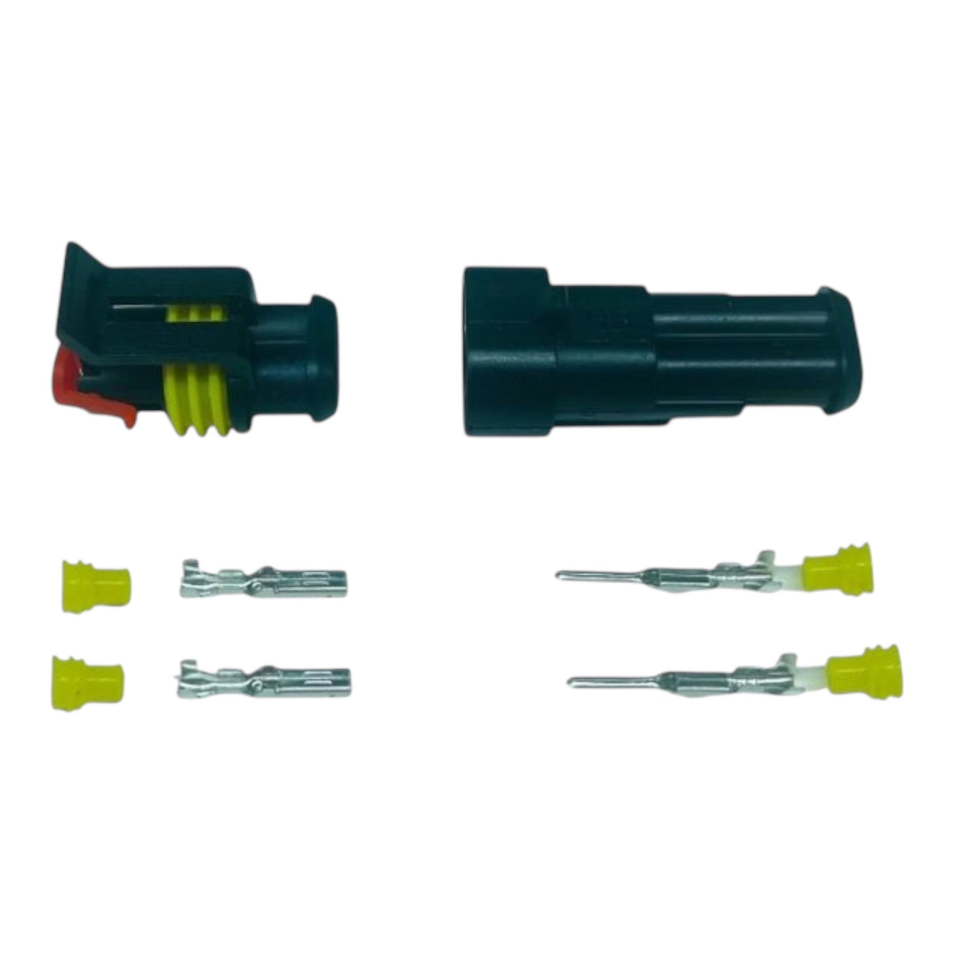 Connettori elettrici maschio - femmina stagno a crimpare IP 65 e di derivazione automotive.