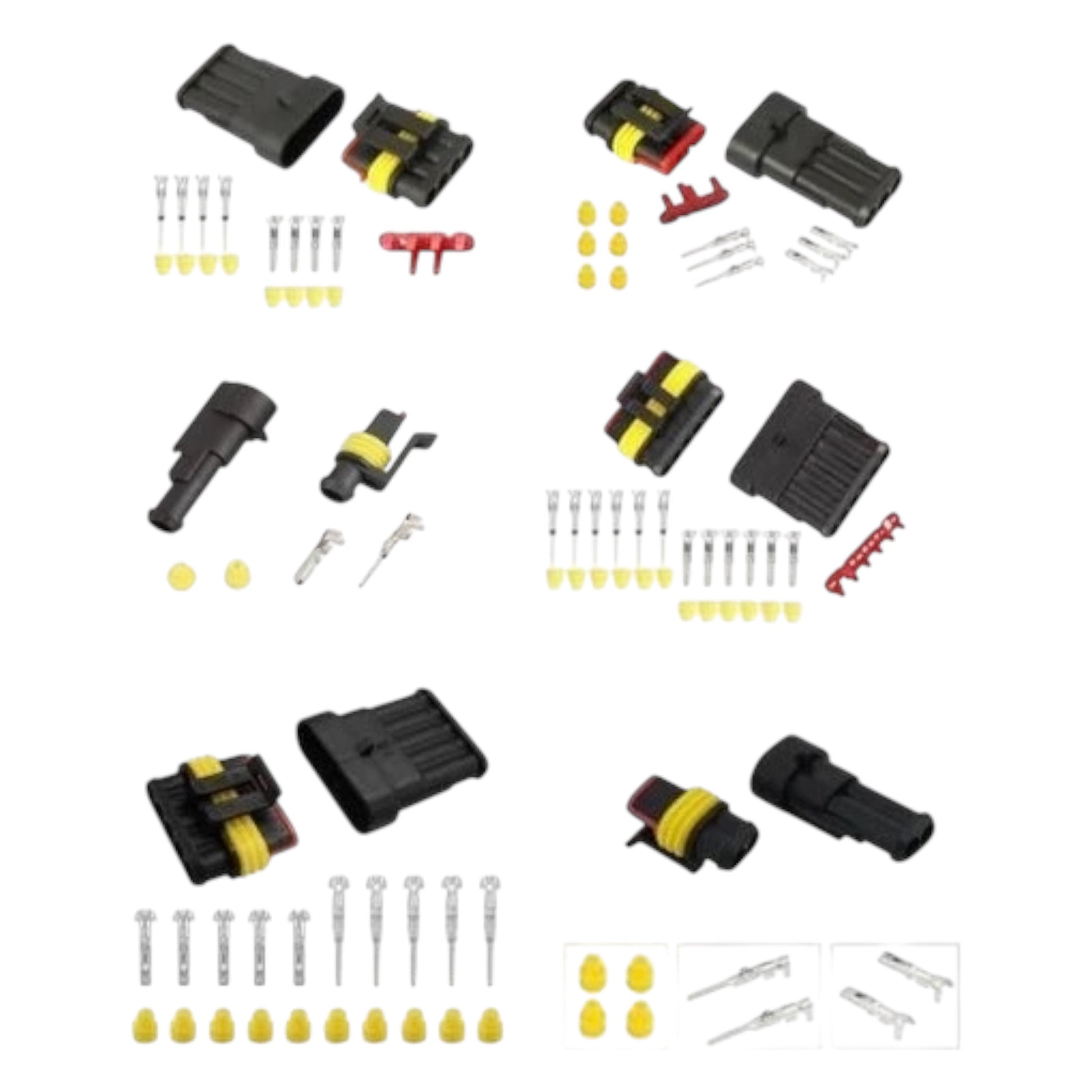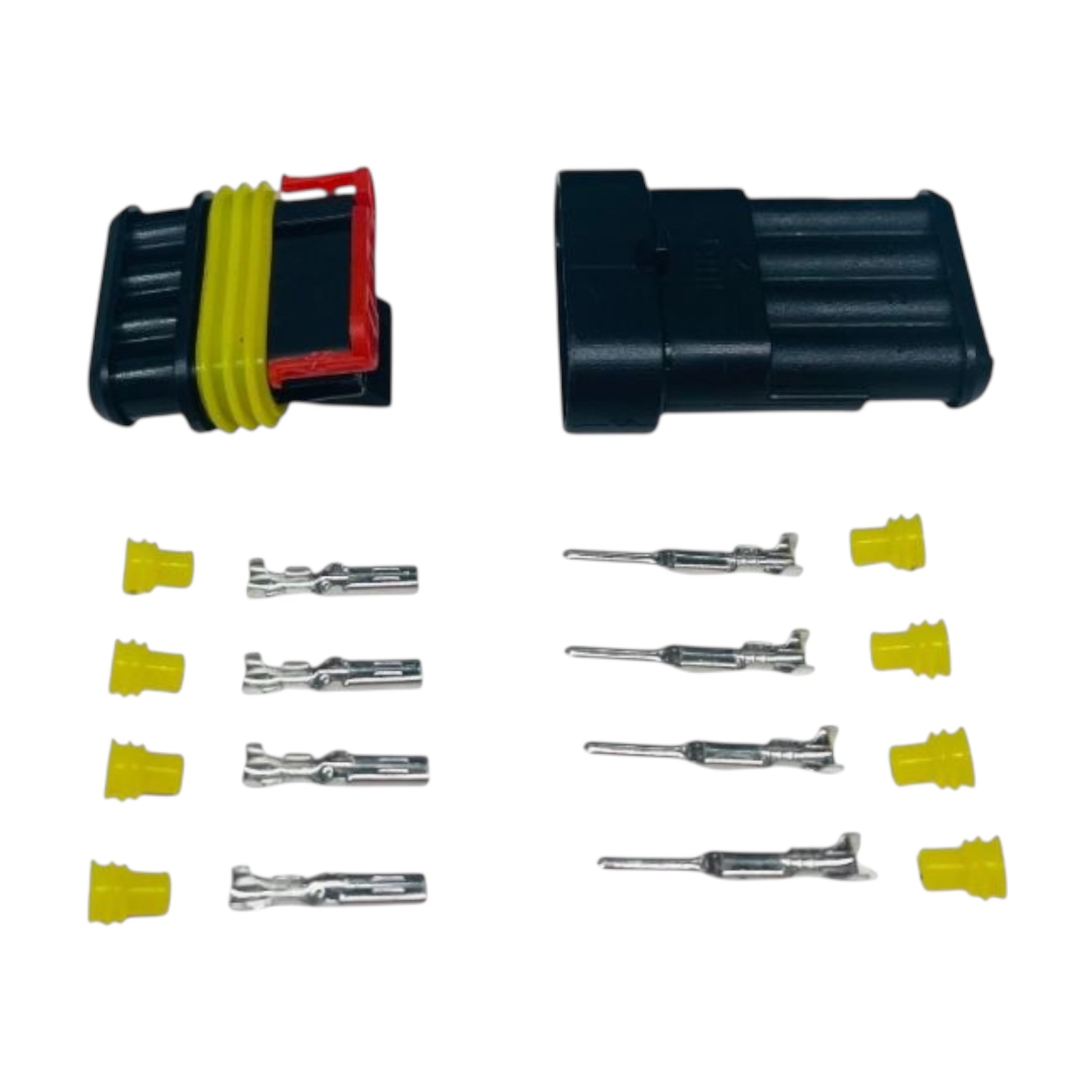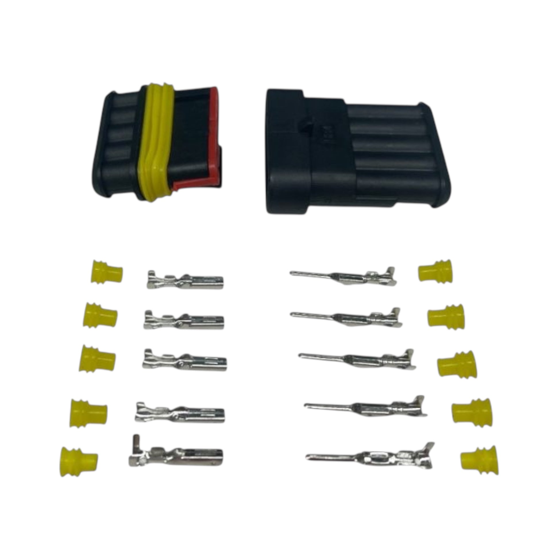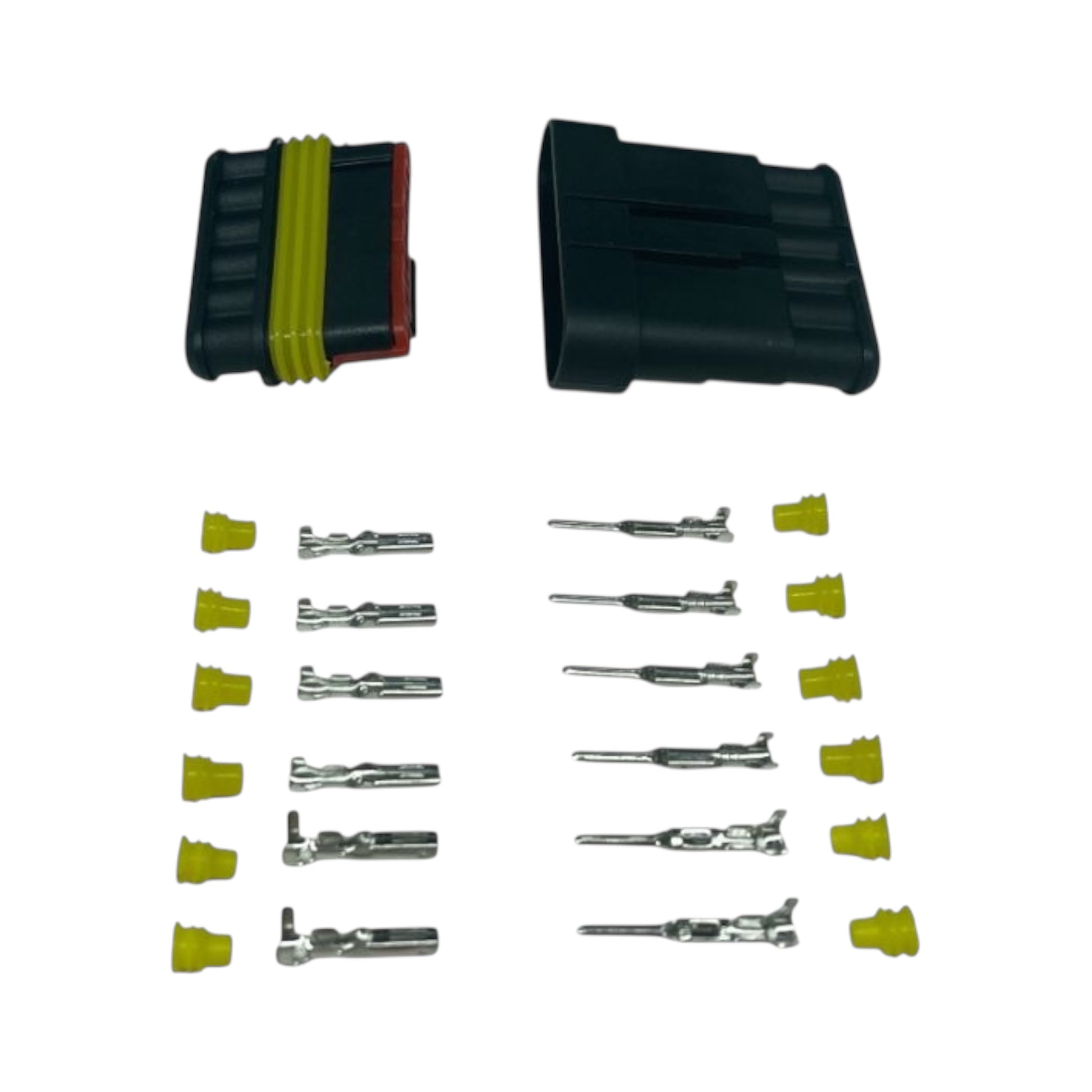 Connettori elettrici maschio - femmina stagno a crimpare IP 65 e di derivazione automotive.
