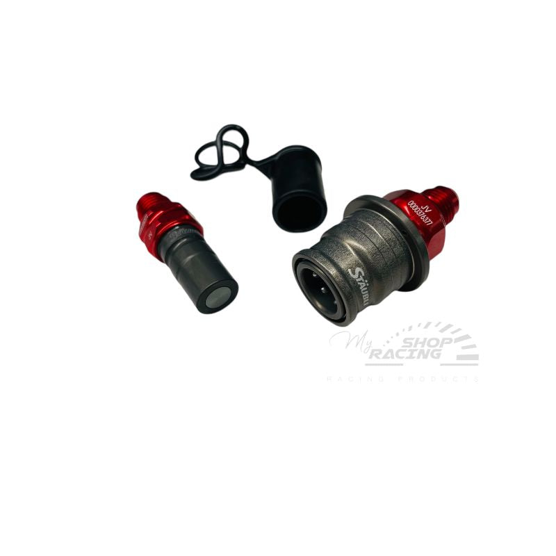 Kit prelievo Staubli in ergal anodizzato rosso, omologato FIA. Innesti Dash 6 AN6. Questo kit è il riferimento mondiale nei kit prelievo per la sua elevata qualità.