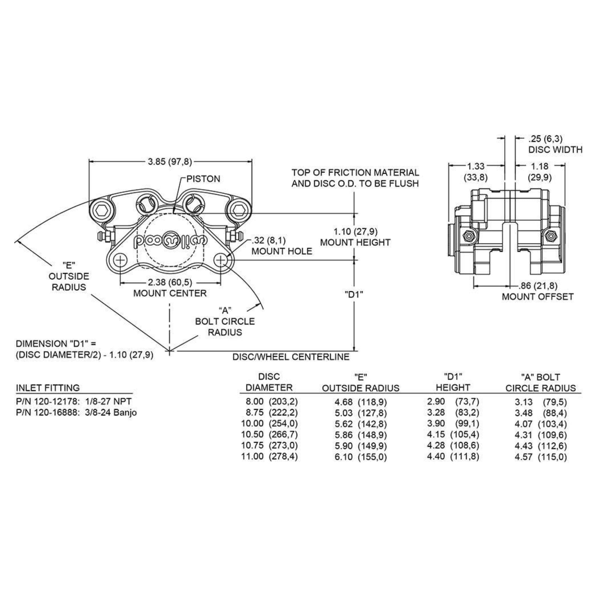 Il riferimento ideale di pinza per impianto freno anteriore specifico per Xc Cross Car. Questa pinza molto compatta permette di utilizzare un disco freno fino a 190 mm ed essere alloggiata all'interno del cerchio anteriore. Fissaggio laterale. Per facilitare lo spurgo è consigliato di aprire i raccordi verso l'alto. Filettatura 1/8 NPT (normalmente si utilizza una vite 3/8x24).