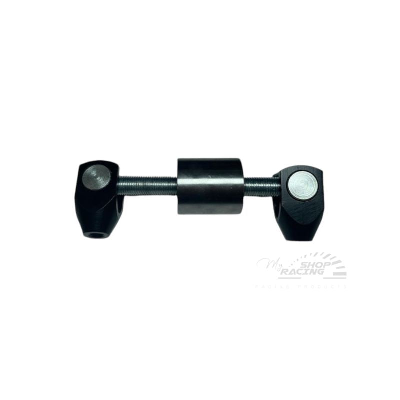 Ripartitore regolabile per circuiti freno anteriore/posteriore. Filetto forcelle 5/16x24 (previsto per pompe Girling/Wilwood). Alloggiamento in acciaio da saldare. Barra filettata pensata per ricevere il cavo di regolazione.